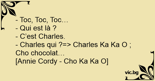 - Charles qui ?=> Charles Ka Ka O ; Cho chocolat…