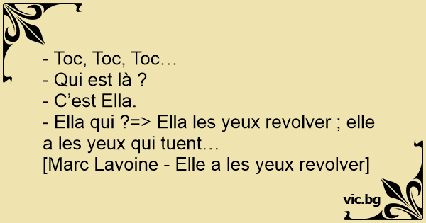 - Ella qui ?=> Ella les yeux revolver ; elle a les yeux qui tuent…