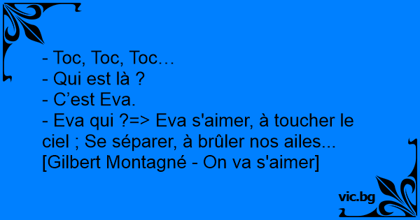 - Eva qui ?=> Eva s'aimer, à toucher le ciel ; Se séparer, à brûler nos ailes...