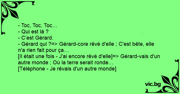 - Gérard qui ?=> Gérard-core rêvé d'elle ; C'est bête, elle n'a rien fait pour ça…