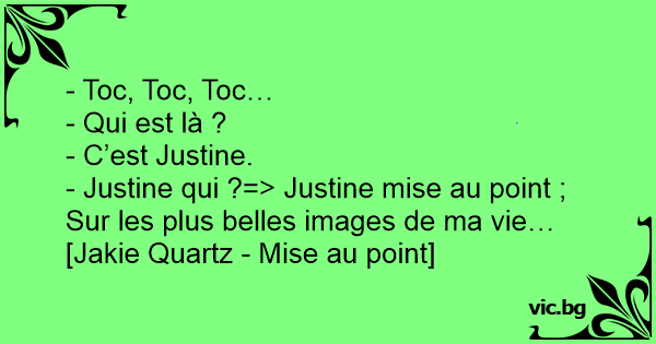 - Justine qui ?=> Justine mise au point ; Sur les plus belles images de ma vie…