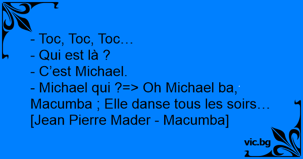 - Michael qui ?=> Oh Michael ba, Macumba ; Elle danse tous les soirs…