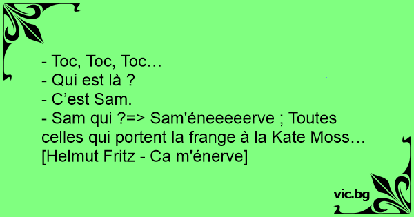 - Sam qui ?=> Sam'éneeeeerve ; Toutes celles qui portent la frange à la Kate Moss…