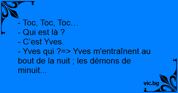 - Yves qui ?=> Yves m'entraînent au bout de la nuit ; les démons de minuit...