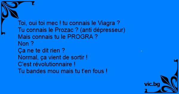 Tu connais le Prozac ? (anti dépresseur)