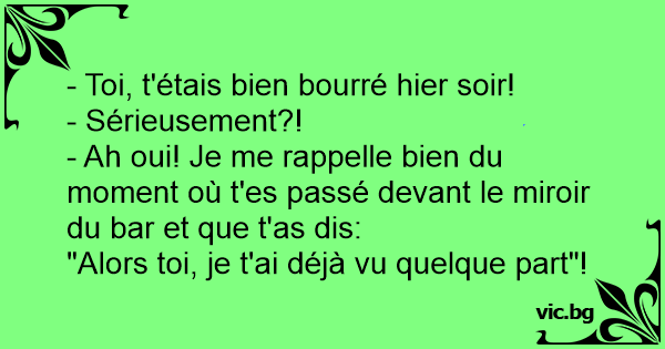 - Ah oui! Je me rappelle bien du moment où t'es passé devant le miroir du bar et que t'as dis: