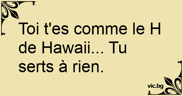 Toi t'es comme le H de Hawaii... Tu serts à rien.