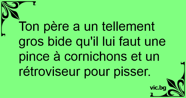Ton père a un tellement gros bide qu'il lui faut une pince à cornichons et un rétroviseur pour рissеr.