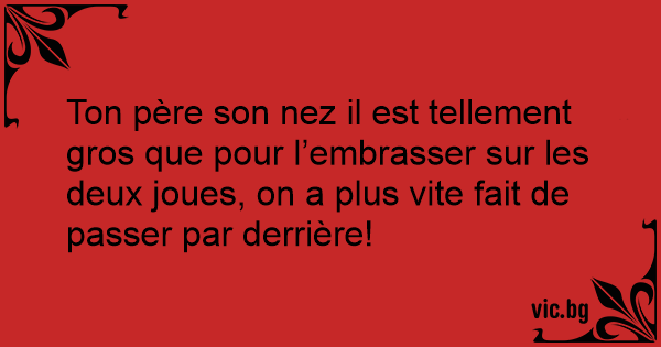Ton père son nez il est tellement gros que pour l’embrasser sur les deux joues, on a plus vite fait de passer par derrière!