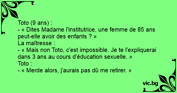- « Dites Madame l'institutrice, une femme de 85 ans peut-elle avoir des enfants ? »
