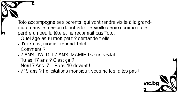 - 7 ANS. J'AI DIT 7 ANS, MAMIE ! s'énerve-t-il.