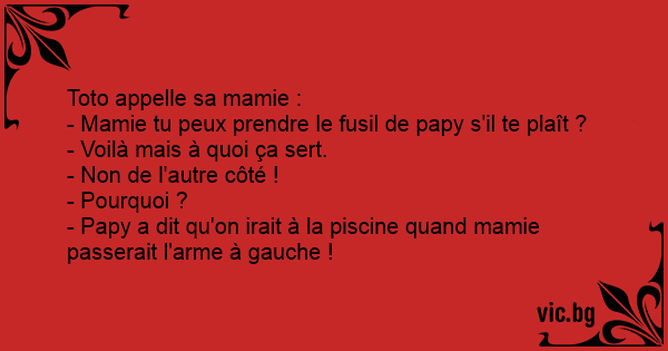 - Mamie tu peux prendre le fusil de papy s'il te plaît ?