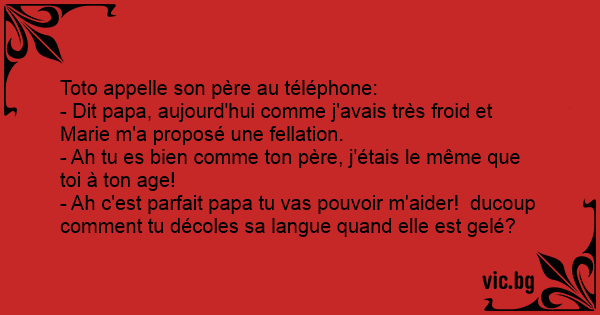 - Dit papa, aujourd'hui comme j'avais très froid et Marie m'a proposé une fellation.