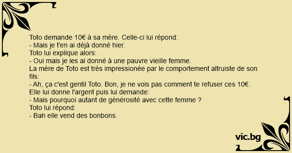 - Ah, ça c'est gentil Toto. Bon, je ne vois pas comment te refuser ces 10€.