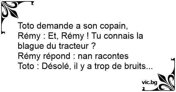 Toto demande a son copain, Rémy : Et, Rémy ! Tu connais la blague du tracteur ?