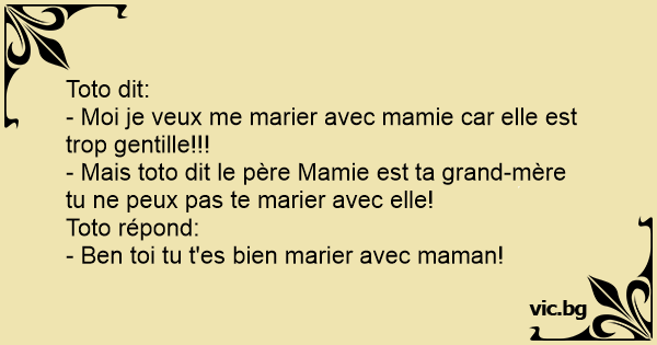 - Mais toto dit le père Mamie est ta grand-mère tu ne peux pas te marier avec elle!