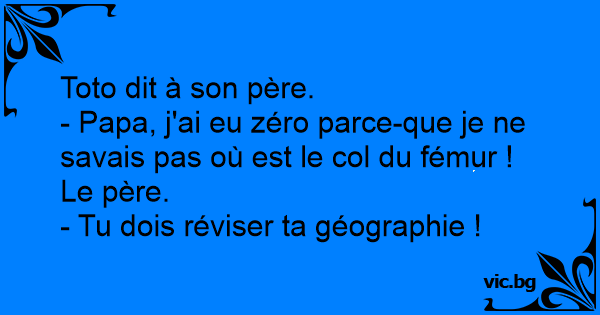 - Papa, j'ai eu zéro parce-que je ne savais pas où est le col du fémur !