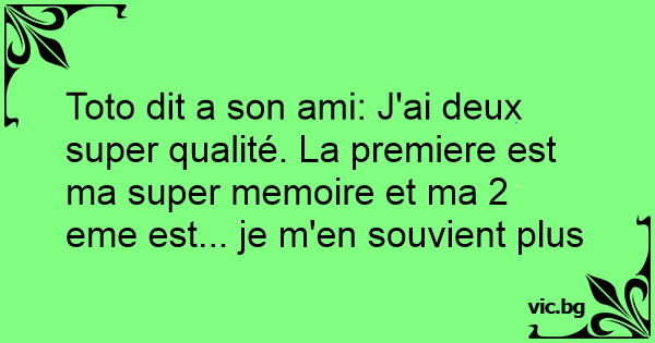 Toto dit a son ami: J'ai deux super qualité. La premiere est ma super memoire et ma 2 eme est... je m'en souvient plus
