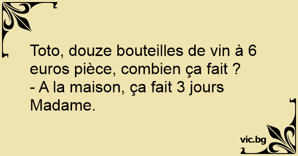 Toto, douze bouteilles de vin à 6 euros pièce, combien ça fait ?