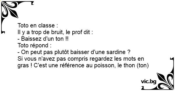 Si vous n'avez pas compris regardez les mots en gras ! C'est une référence au poisson, le thon (ton)