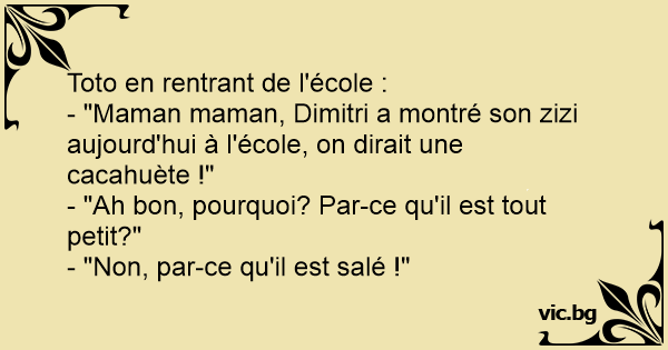 - "Maman maman, Dimitri a montré son zizi aujourd'hui à l'école, on dirait une cacahuète !"