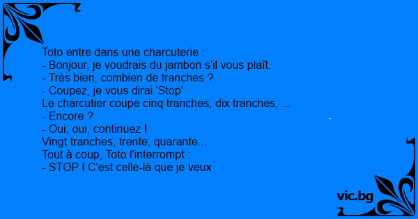 Le charcutier coupe cinq tranches, dix tranches, ...