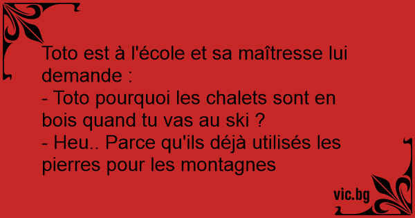 - Toto pourquoi les chalets sont en bois quand tu vas au ski ?
