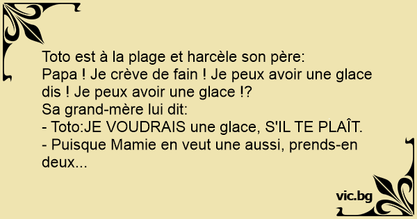 - Toto:JE VOUDRAIS une glace, S'IL TE PLAÎT.
