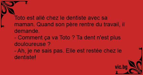 - Comment ça va Toto ? Ta dent n'est plus douloureuse ?