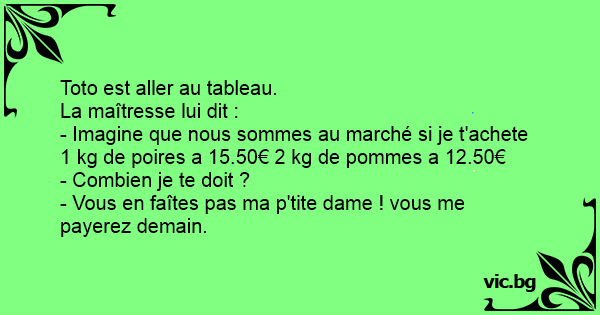 - Imagine que nous sommes au marché si je t'achete 1 kg de poires a 15.50€ 2 kg de pommes a 12.50€