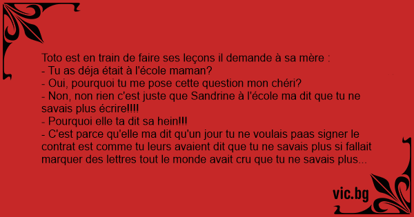 - Non, non rien c'est juste que Sandrine à l'école ma dit que tu ne savais plus écrire!!!!