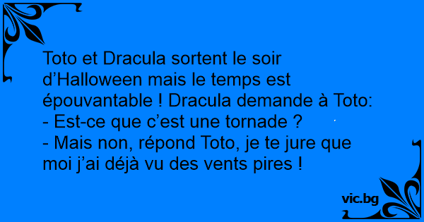 Toto et Dracula sortent le soir d’Halloween mais le temps est épouvantable ! Dracula demande à Toto:
