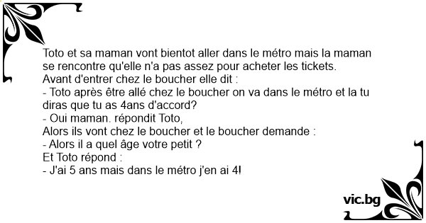 - Toto après être allé chez le boucher on va dans le métro et la tu diras que tu as 4ans d'accord?