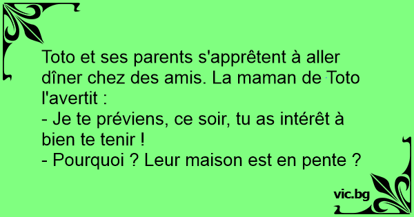 Toto et ses parents s'apprêtent à aller dîner chez des amis. La maman de Toto l'avertit :