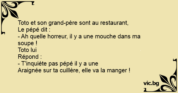 - Ah quelle horreur, il y a une mouche dans ma soupe !