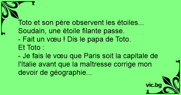- Je fais le vœu que Paris soit la capitale de l'Italie avant que la maîtresse corrige mon devoir de géographie...
