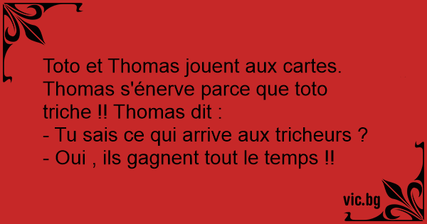 Toto et Thomas jouent aux cartes. Thomas s'énerve parce que toto triche !! Thomas dit :