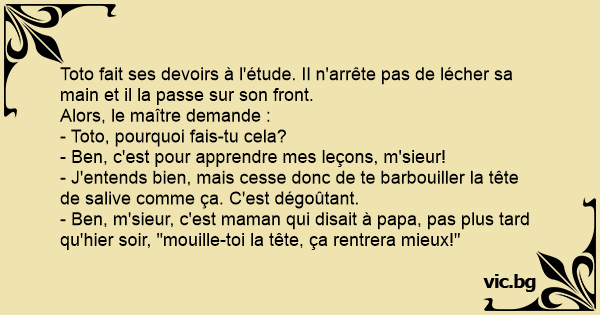 - Ben, m'sieur, c'est maman qui disait à papa, pas plus таrd qu'hier soir, "mouille-toi la tête, ça rentrera mieux!"
