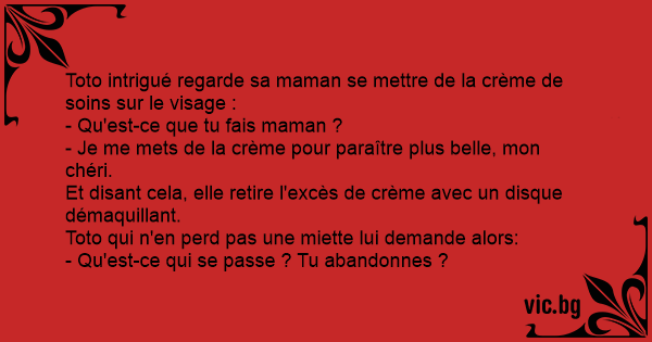 - Je me mets de la crème pour paraître plus belle, mon chéri.