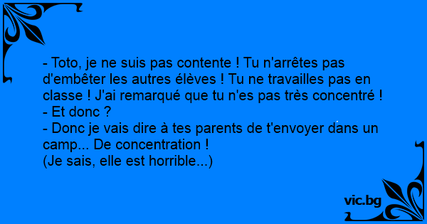- Donc je vais dire à tes parents de t'envoyer dans un camp... De concentration !