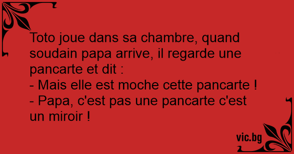 Toto joue dans sa chambre, quand soudain papa arrive, il regarde une pancarte et dit :