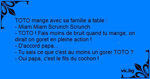 - TOTO ! Fais moins de bruit quand tu mange, on dirait on goret en pleine action !