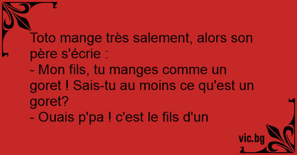 - Mon fils, tu manges comme un goret ! Sais-tu au moins ce qu'est un goret?