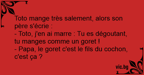 - Toto, j'en ai marre : Tu es dégoutant, tu manges comme un goret !