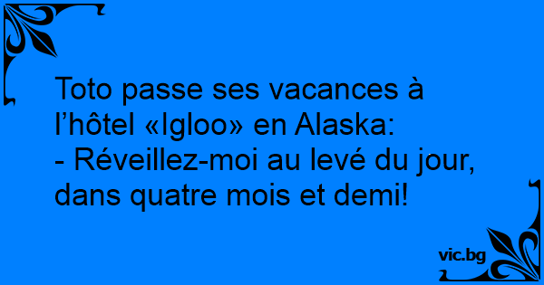 Toto passe ses vacances à l’hôtel «Igloo» en Alaska: