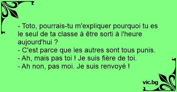 - Toto, pourrais-tu m'expliquer pourquoi tu es le seul de ta classe à être sorti à l'heure aujourd'hui ?