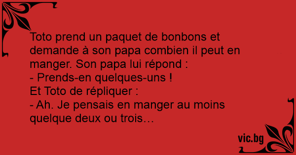 Toto prend un paquet de bonbons et demande à son papa combien il peut en manger. Son papa lui répond :