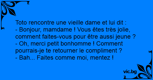 - Bonjour, mamdame ! Vous êtes très jolie, comment faites-vous pour être aussi jeune ?