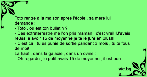 - Des extraterrestre me l'on pris maman , c'est vrai!!!J'avais réussi a avoir 15 de moyenne je te le jure en plus!!!