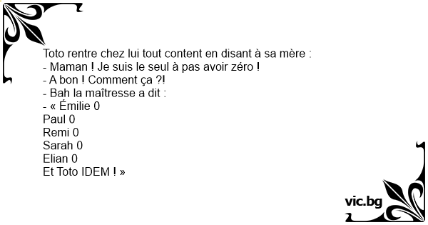 - Maman ! Je suis le seul à pas avoir zéro !